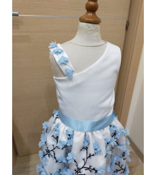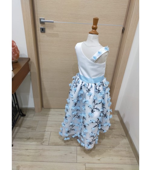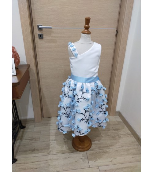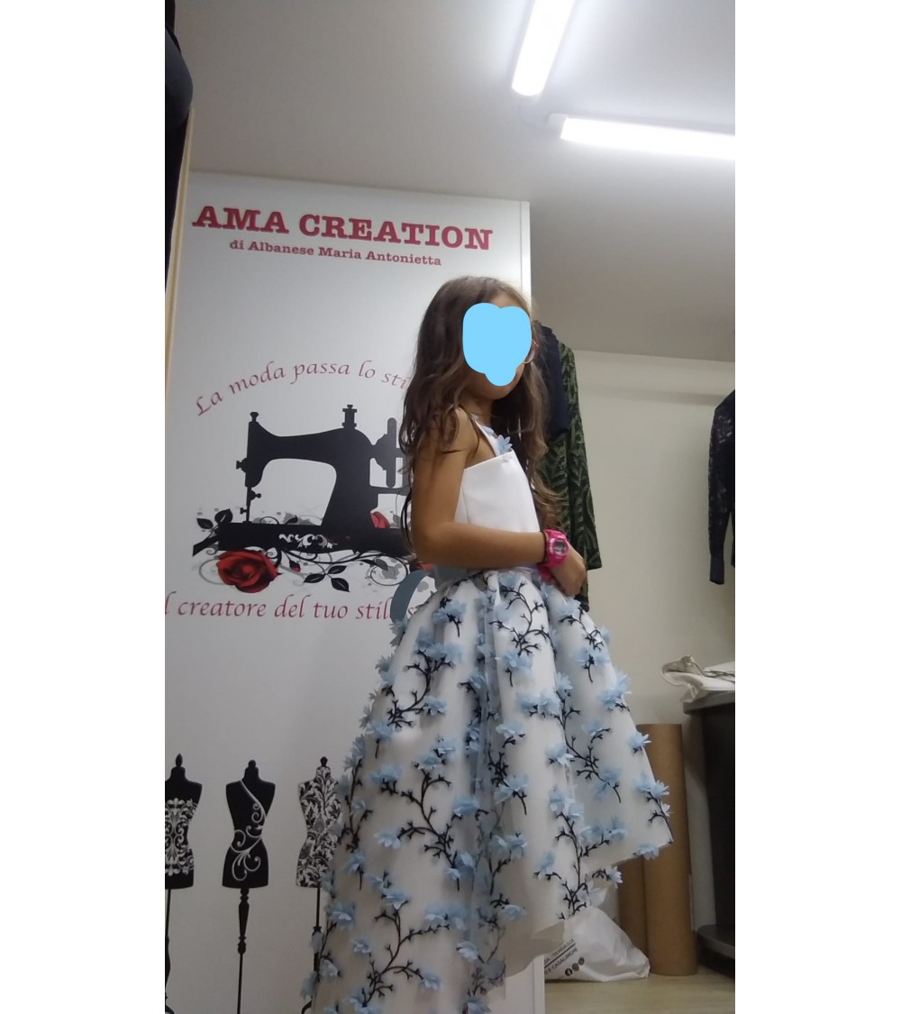 Vestito alta sartoria in mikado e tulle 3D.